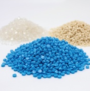 プラスチックの原料に、柔らかくしたり、壊れにくくしたり、色をつけたりするための添加剤を加えたものです。形は小さな粒状をしており、「ペレット」と呼ばれます。