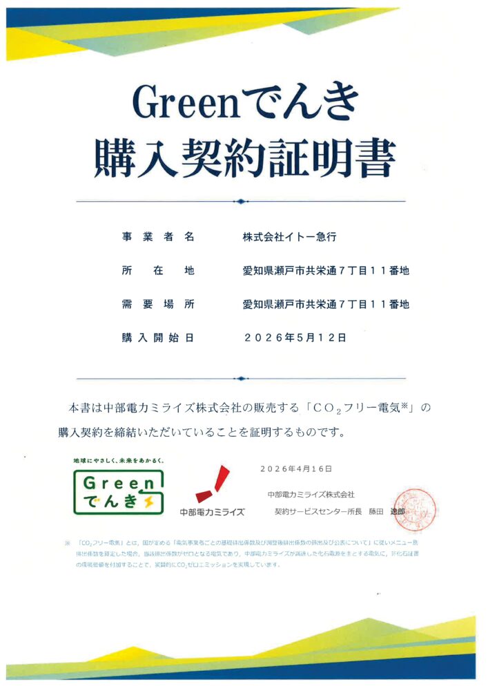 当社は、CO2排出量削減に対する取り組みとして、 中部電力ミライズ株式会社様と愛知県瀬戸市の本社社屋にかかるCO2フリー電気購入契約を締結いたしました。