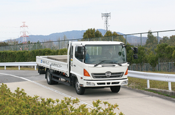 2013年より電気モーターとディーゼルエンジンをエネルギー源として 走行するハイブリッドトラックを導入しました。発進や加速の際、ディーゼルエンジンと電気モーターの両方のエネルギーを 使用し、ディーゼルエンジンの燃料消費を抑制できるため、 燃費の良さが特徴です。
